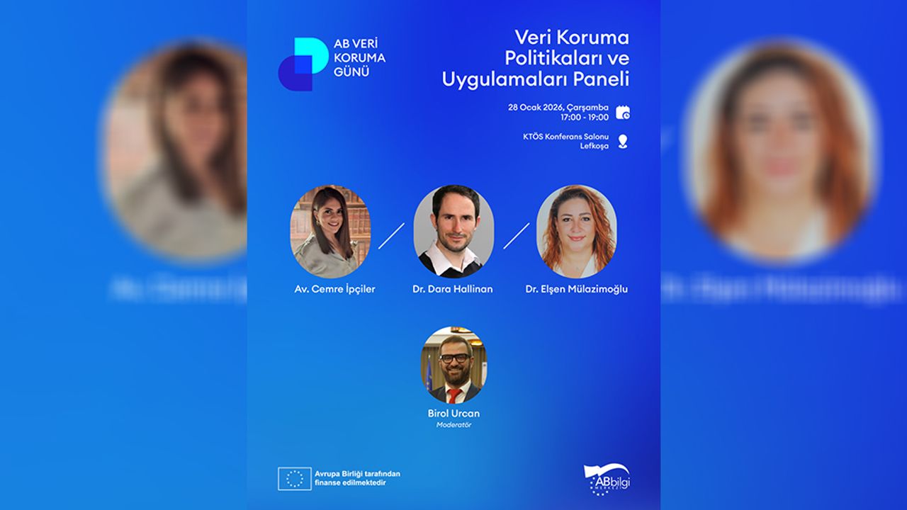 Alanında uzman isimlerin katılımıyla düzenlenecek panelde, FIZ Karlsruhe – Leibniz Institute for Information Infrastructure Kıdemli Araştırmacısı, AB Veri Koruma ve GDPR Uzmanı Dr. Dara Hallinan, Kıbrıs Türk Barolar Birliği KVKK Temsilcisi Av. Cemre İpçiler ve Kıbrıs Türk Tabipleri Birliği KVKK Temsilcisi Dr. Elşen Mülazimoğlu sunum yapacak.