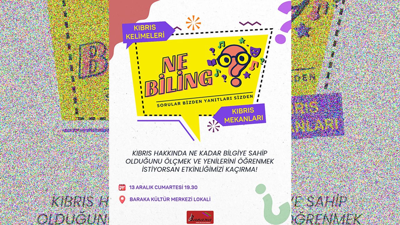 Baraka Kültür Merkezi 13 Aralık Cumartesi günü “Kıbrıs Kelimeleri ve Mekanları Hakkında Ne Biling?” etkinliği düzenliyor. Baraka Kültür Merkezi’nde yapılacak etkinlik saat 19.30’da başlayacak.