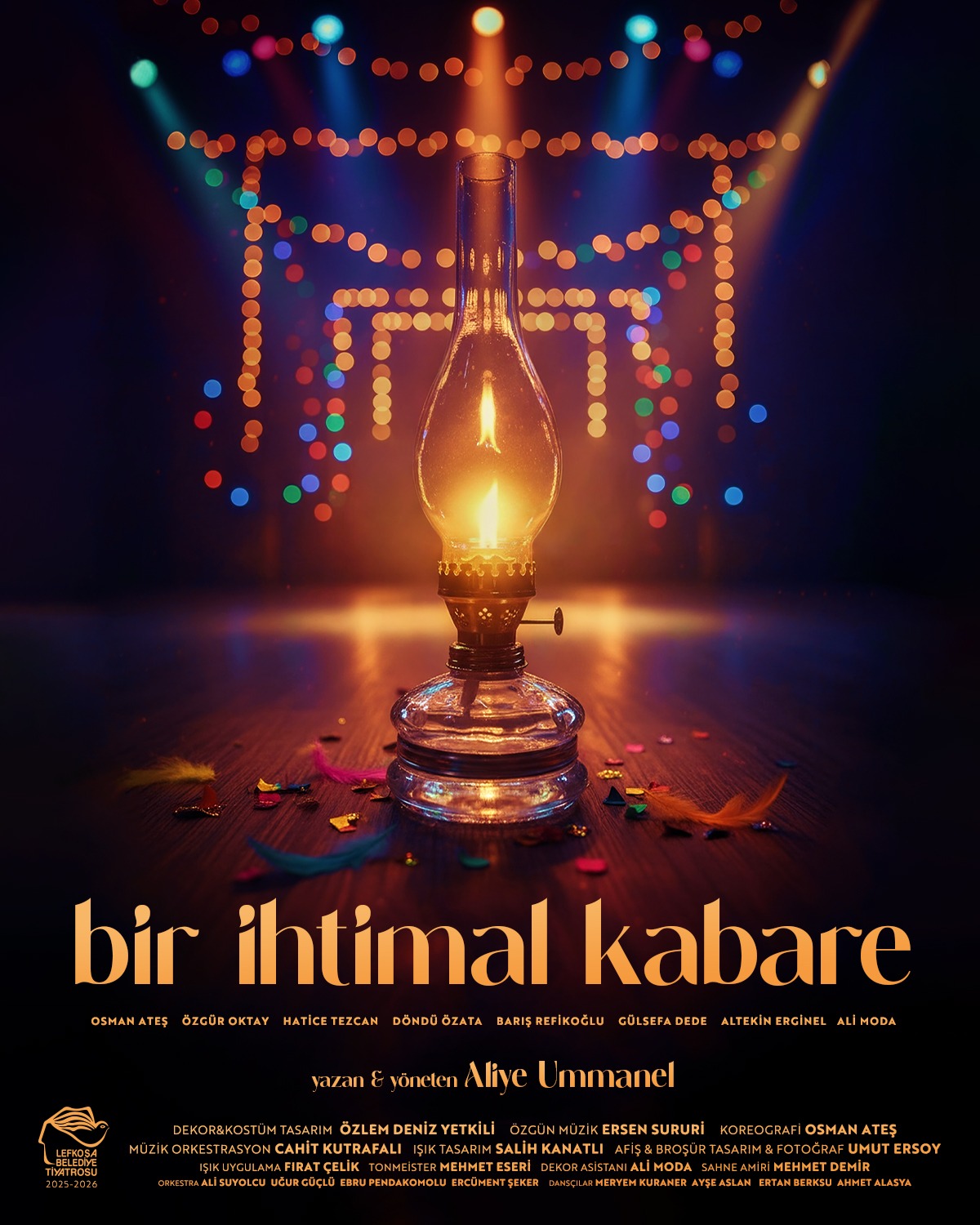 Kalabalık bir kadro tarafından sahnelenen “Bir İhtimal Kabare” oyununu Aliye Ummanel yazdı ve yönetti. Oyunda Osman Ateş, Döndü Özata, Özgür Oktay, Hatice Tezcan, Barış Refikoğlu, Gülsefa Dede, Altekin Erginel ve Ali Moda rol alıyor. Oyunun dekor-kostüm tasarımı Özlem Deniz Yetkili’ye, özgün müziği Ersen Sururi’ye, müzik orkestrasyon Cahit Kutrafalı’ya koreografisi Osman Ateş’e, ışık tasarımı Salih Kanatlı’ya, afiş-broşür tasarımı ve fotoğrafları Umut Ersoy’a ait. Orkestrada Lefkoşa Belediye Orkestrası’ndan Ali Suyolcu, Uğur Güçlü, Ebru Pendakomolu, Ercüment Şeker yer alırken dansçılar Meryem Kuraner, Ayşe Aslan, Ertan Berksu, Ahmet Alasya’dan oluşuyor. Oyun kadrosunda ışık uygulama Fırat Çelik, dekor-kostüm asistanlığı Ali Moda tarafından üstlenilirken, Mehmet Eseri tonmaister, Mehmet Demir ise sahne amiri olarak görev alıyor.