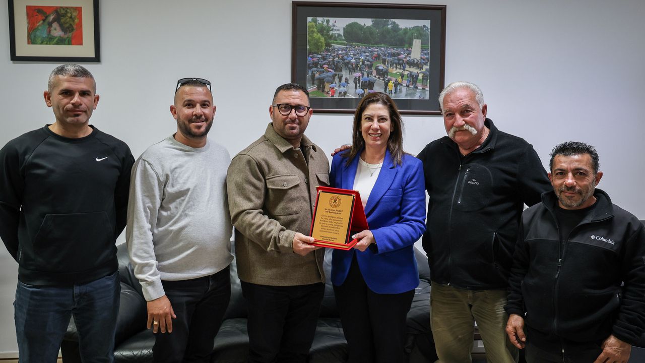 Ziyaretin sonunda Kalkanlı Spor Kulübü Yönetim Kurulu, CTP Genel Başkanı Sıla Usar İncirli’ye plaket takdim etti.