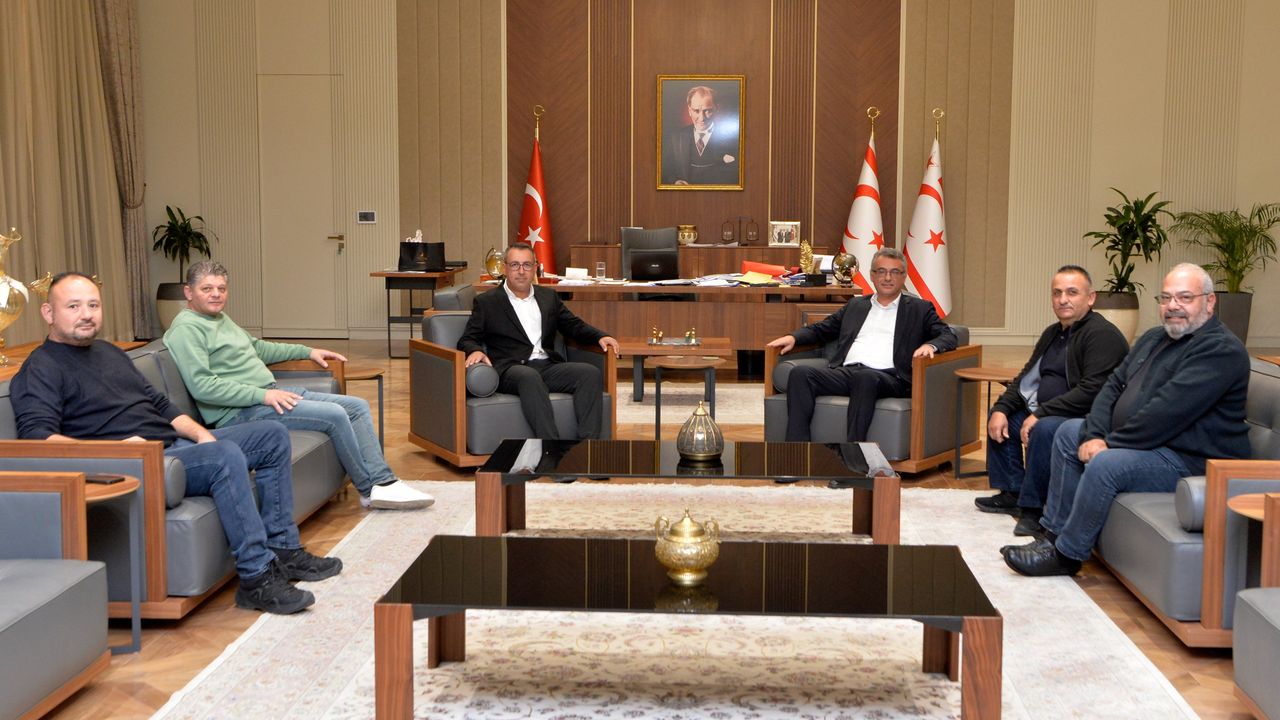 Cumhurbaşkanı Tufan Erhürman, Kasaplar Birliği Başkanı Raşit Şenkaya ve yönetim kurulunu kabul ederek görüştü.