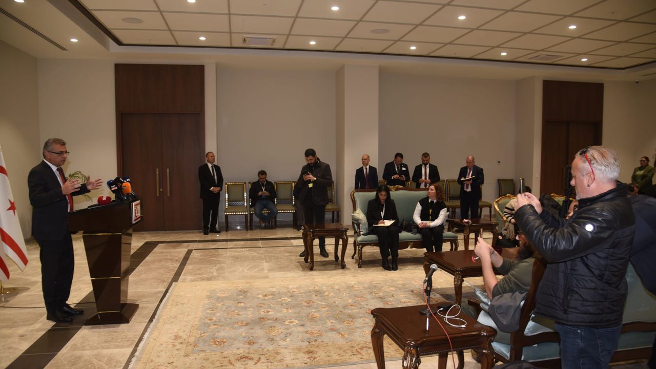 Cumhurbaşkanı Erhürman, Güney Kıbrıs Rum Yönetimi Lideri Nikos Hristodulidis ile BM Genel Sekreteri'nin Kişisel Temsilcisi Maria Angela Holguin Cuellar’ın da katıldığı görüşmenin ardından Cumhurbaşkanlığı’nda basın toplantısı düzenledi.