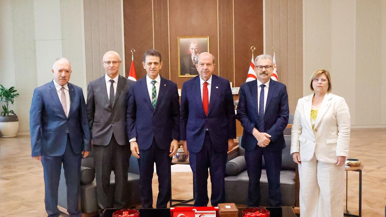 Cumhurbaşkanı Ersin Tatar, Kamu Hizmeti Komisyonu (KHK) Başkanı Ömer Köseoğlu ve beraberindeki heyeti kabul ederek, görüştü.