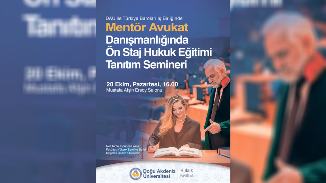 Doğu Akdeniz Üniversitesi (DAÜ) Hukuk Fakültesi ile Türkiye Baroları iş birliğinde, “Mentör Avukat Danışmanlığında Ön Staj Hukuk Eğitimi Destek Programı” kapsamında iş birliği protokolü imzalanacak ve tanıtım semineri düzenlenecek.
