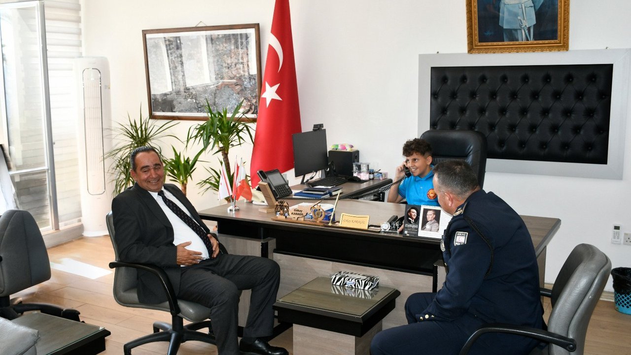 Dr. Suat Günsel Devlet İlkokulu Müdürü Selim Özmenek başkanlığındaki öğrenci heyeti, 23 Nisan Ulusal Egemenlik ve Çocuk Bayramı etkinlikleri kapsamında Polis Genel Müdür Vekili Gökay Karagil’i ziyaret etti.