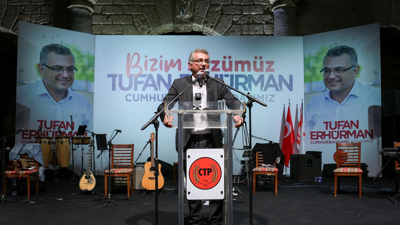 Cumhuriyetçi Türk Partisi (CTP) Genel Başkanı ve Cumhurbaşkanı adayı Tufan Erhürman, Kıbrıs Türk halkının mutsuzluğa ve umutsuzluğa teslim olmayacağını söyleyerek, "Kimse bu halkın onuruyla oynayamayacak, bu halkın onurunu kıramayacak. Bilecekler ki bizim kurumlarımız dalga konusu olacak kurumlar değil” dedi.