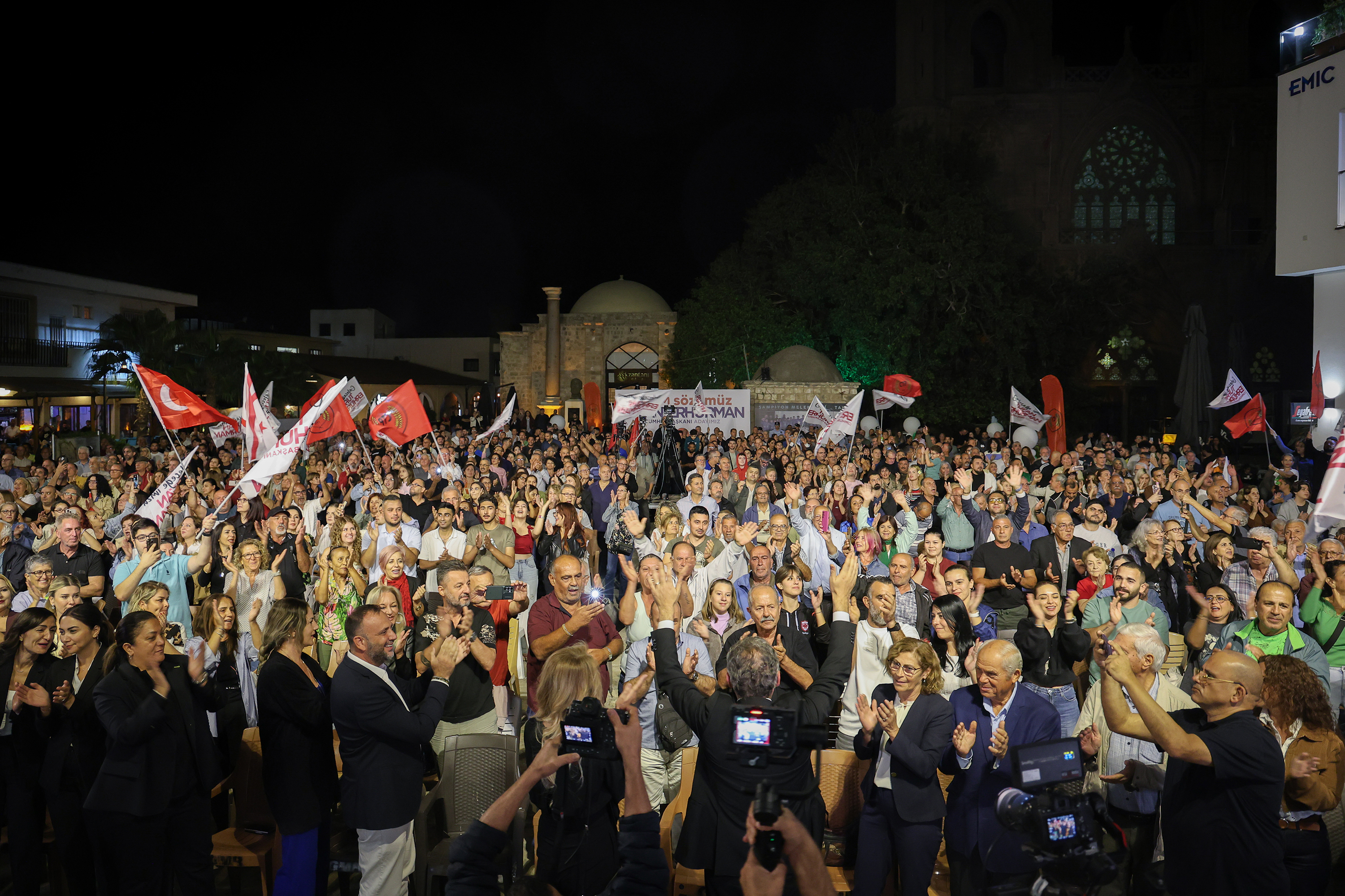 Tufan Erhürman, “Lefkoşa’da Kızılbaş’ta başladık, kıpırtı başladı. Girne’de kalede büyüdü. Köyleri gezdik. Değirmenlik’te öyle bir kalabalık oldu ki aman Allah’ım. Sonra Güzelyurt ve İskele’yi gördük, Gazimağusa’yı gördük; şimdi gördük ki, umut geri geldi insanlara. İnsanlarımız değişime, umuda karar verdi. İnsanlarımız ‘mutsuzluğa, umutsuzluğa teslim olmayacağız; teslimiyeti değil, temsiliyeti seçiyoruz’ dediler. ‘İtibarı, güveni seçiyoruz dediler’” dedi.
