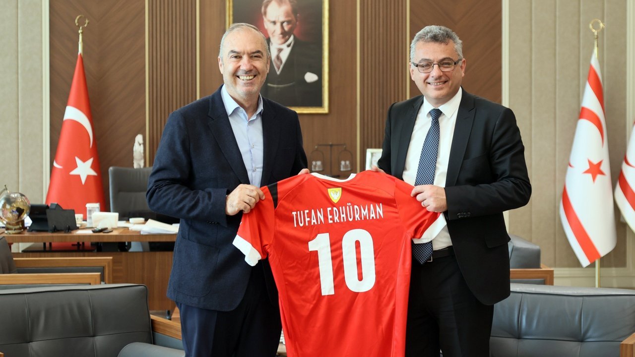 Cumhurbaşkanı Tufan Erhürman, kabulde yaptığı konuşmada, KTFF başkanı ve yönetim kurulu üyelerini görmekten duyduğu memnuniyeti ifade etti.