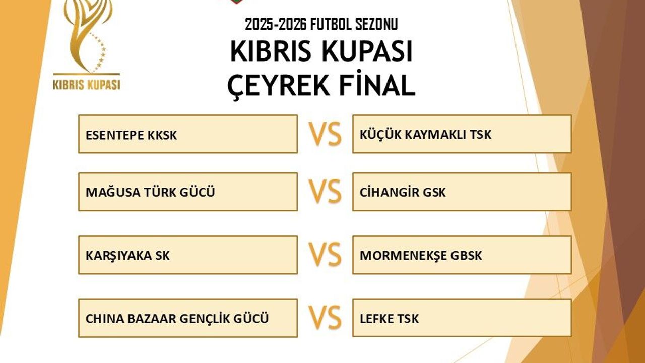 Kıbrıs Kupası'nda çeyrek final kuraları Kıbrıs Türk Futbol Federasyonu Ahmed Sami Topcan Toplantı Salonu’nda yapılan kura çekimi ile belirlenmiş oldu.