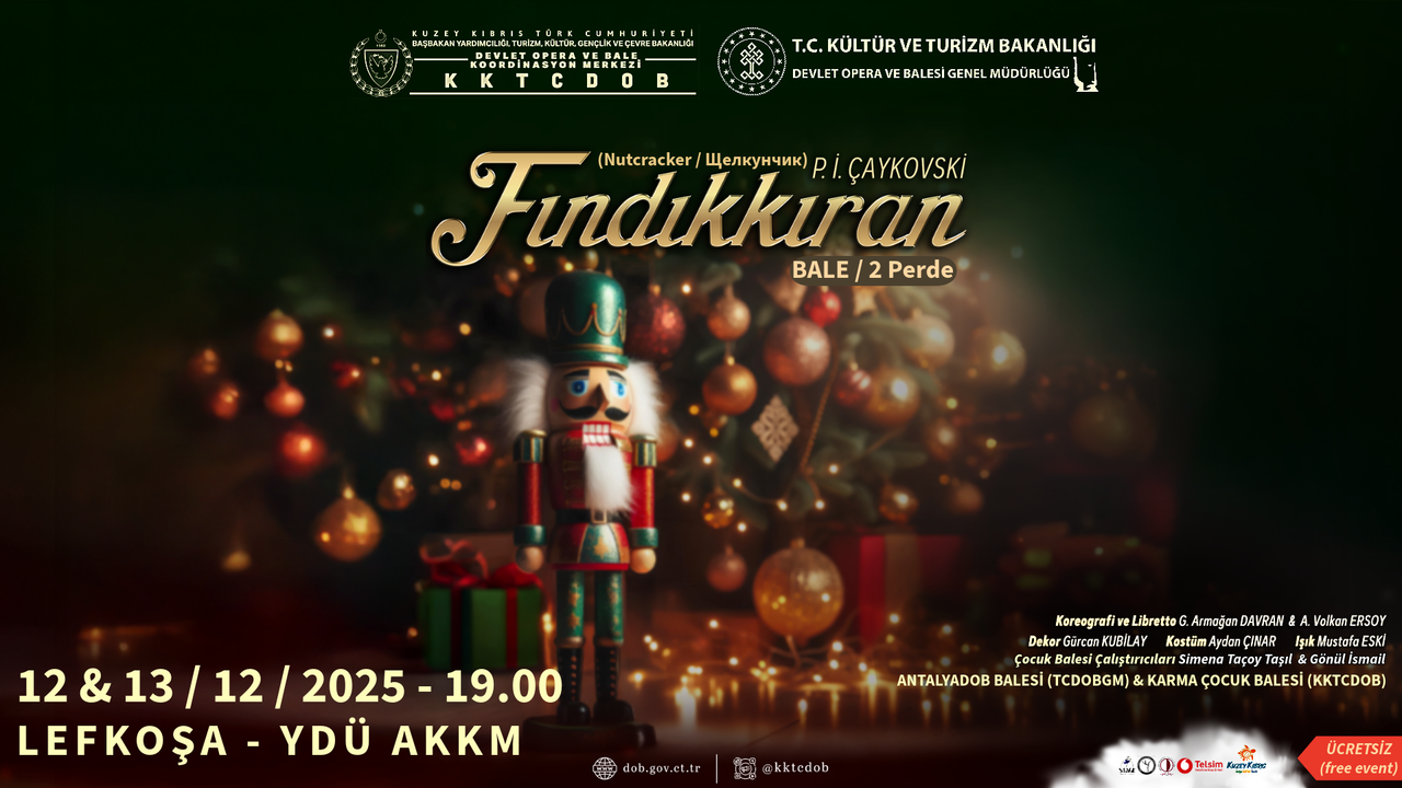 Opera ve bale kuruluşlarının sezon takvimlerinde yer alan bu klasik eser, KKTCDOB'un Stage Dance Studio ve The Cyprus Dance Education Centre iş birlikleriyle oluşturduğu Fındıkkıran Karma Çocuk Balesi ile Antalya DOB Bale sanatçılarının ortak yorumuyla sahnede olacak.