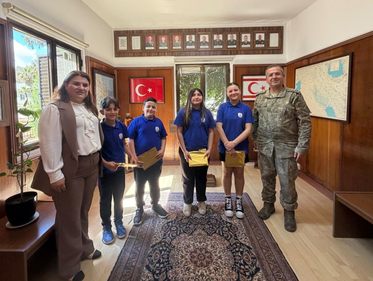 Gazimağusa’da 23 Nisan Ulusal Egemenlik ve Çocuk Bayramı etkinlikleri kapsamında anlamlı bir ziyaret gerçekleştirildi. Karakol İlkokulu 5. sınıf öğrencilerinden oluşan bir grup, Gazimağusa Merkez Komutanlığı’nı ziyaret ederek bayram coşkusunu resmi makamda paylaştı.