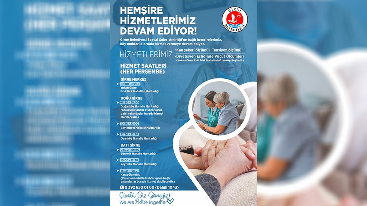 Girne Belediyesi Sosyal Şube Amirliği’ne bağlı hemşireler, her Perşembe günü Girne bölgesi köy muhtarlıklarında vatandaşlara sağlık hizmeti vermeye devam ediyor.