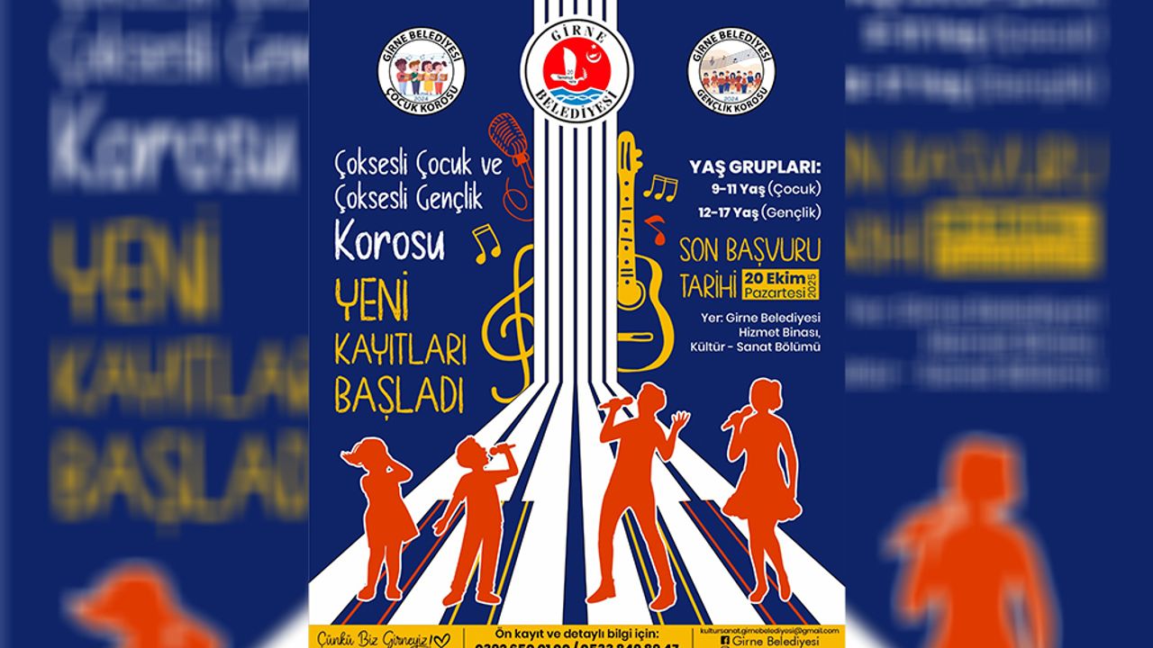 Girne Belediyesi'nin “Çok Sesli Çocuk” ve “Çok Sesli Gençlik Korosu” için yeni dönem kayıtları devam ediyor. Koroya katılmak isteyenler 20 Ekim Pazartesi gününe kadar başvuruda bulunabilir.