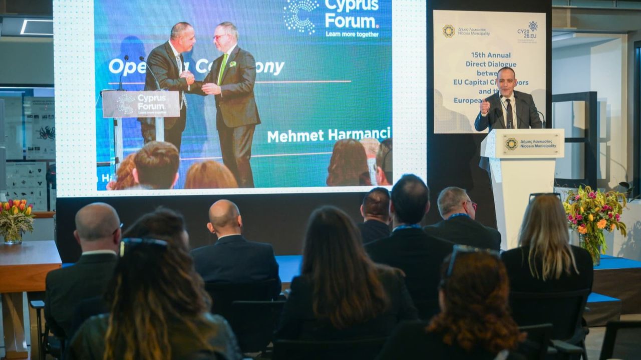 Lefkoşa Türk Belediyesi (LTB) Başkanı Mehmet Harmancı, güney Lefkoşa Belediye Başkanı Charalambos Prountzos’un davetiyle katıldığı “15. AB Başkent Belediye Başkanları ile Avrupa Komisyonu Arasında Direkt Diyalog Zirvesi” kapsamında düzenlenen bir oturumda konuşma yaptı.