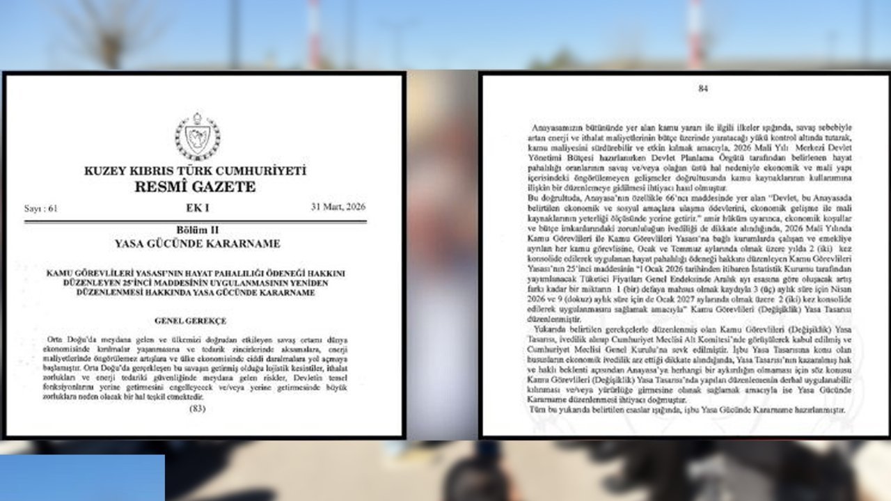 Yasa gücünde kararname ile kamu görevlilerinin hayat pahalılığı ödeneğinin ödeme şekli yeniden düzenlendi. Buna göre hayat pahalılığı ödeneği 2026 yılı için tek seferde değil, Nisan 2026 ve Ocak 2027 olmak üzere iki taksit halinde ödenecek.