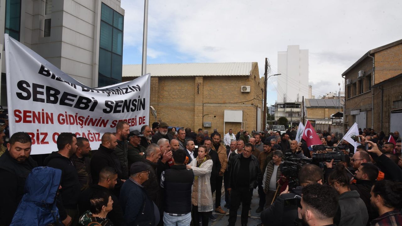 Bakanlık önünde “Bizim bitişimizin sebebi sensin, senin gidişinin sebebi de biz olacağız a bakan” yazılı pankart açan ve “gabak doğrayan” eylemciler, KKTC, TC ve birlik bayrakları taşıdı. Bakanlık önündeki eylemde davul zurna da çalındı.
