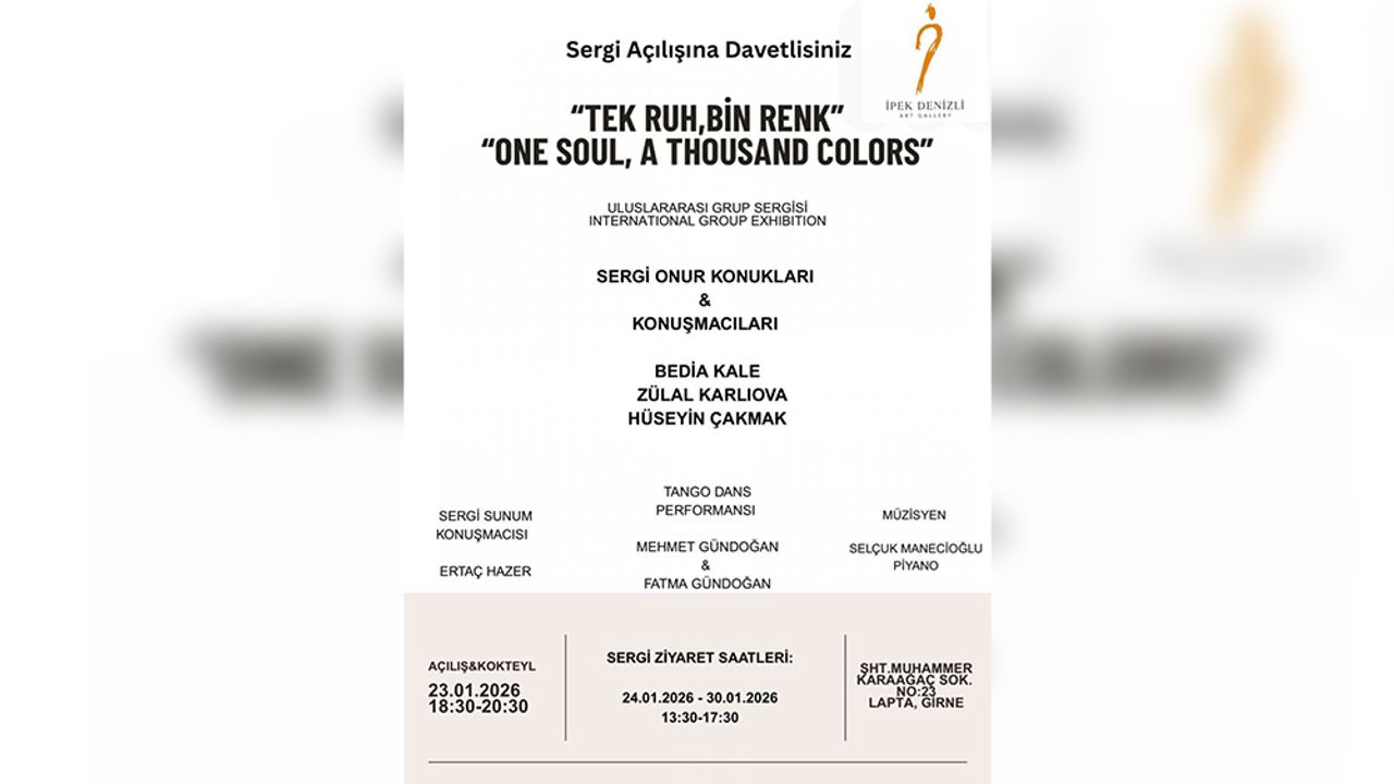 İpek Denizli Sanat Galerisi tarafından düzenlenen “Tek Ruh, Bin Renk” adlı üçüncü uluslararası grup sergisi 23 Ocak Cuma günü saat 18.30’da açılacak.