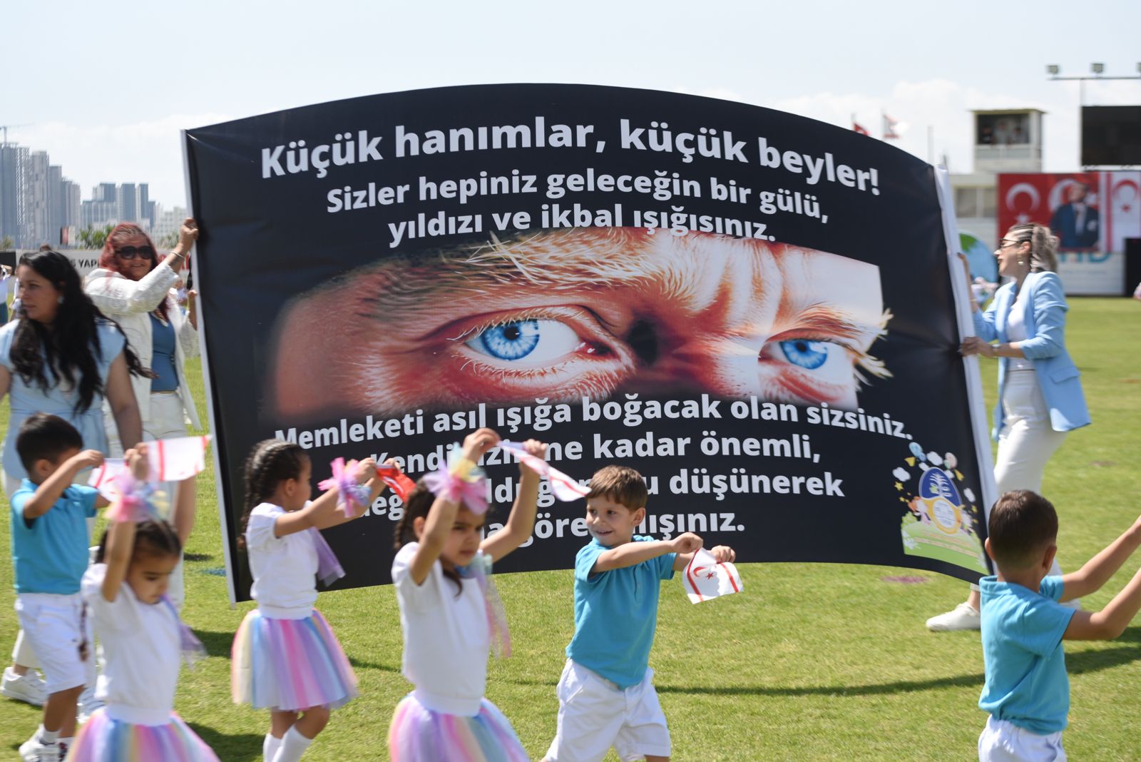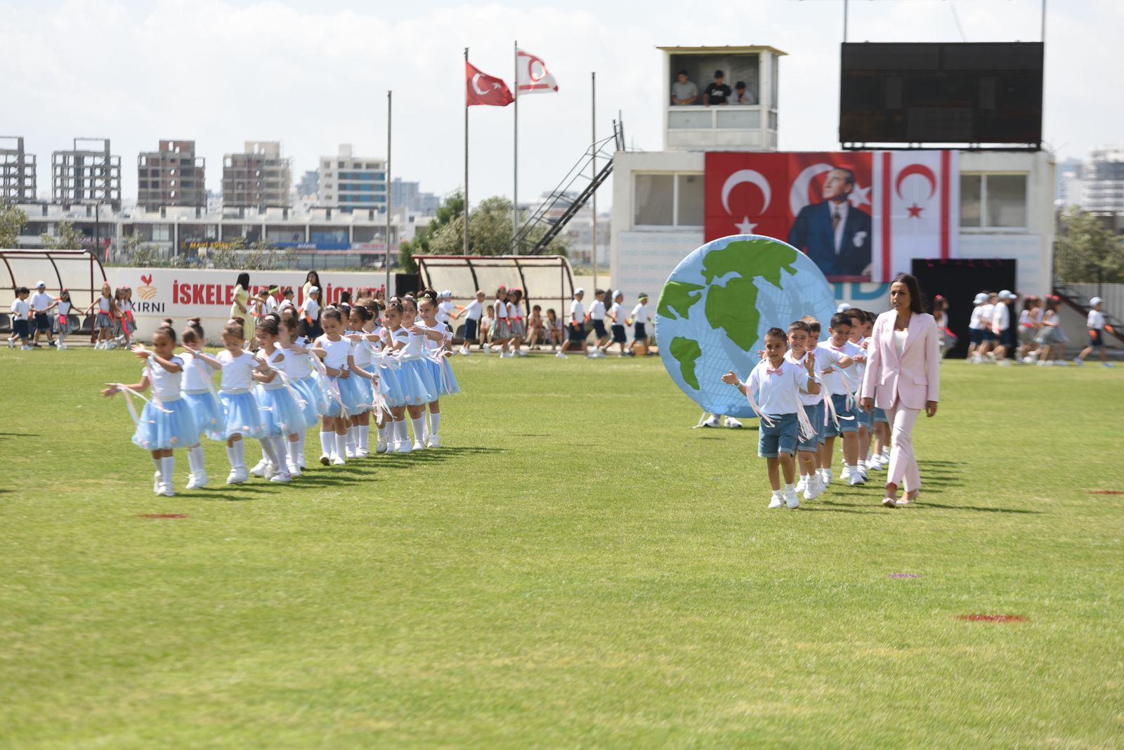23 Nisan Ulusal Egemenlik ve Çocuk Bayramı nedeniyle İskele Cumhuriyet Stadyumu’nda üç okulun katılımıyla tören düzenlendi.