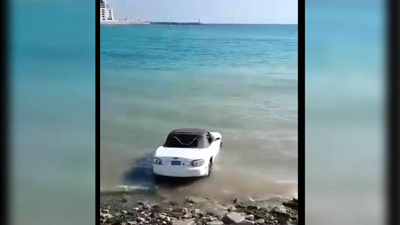 Limasol’da bir kadın, çevredekilerin şaşkın bakışları arasında arabasını denize itti ve kaçtı.