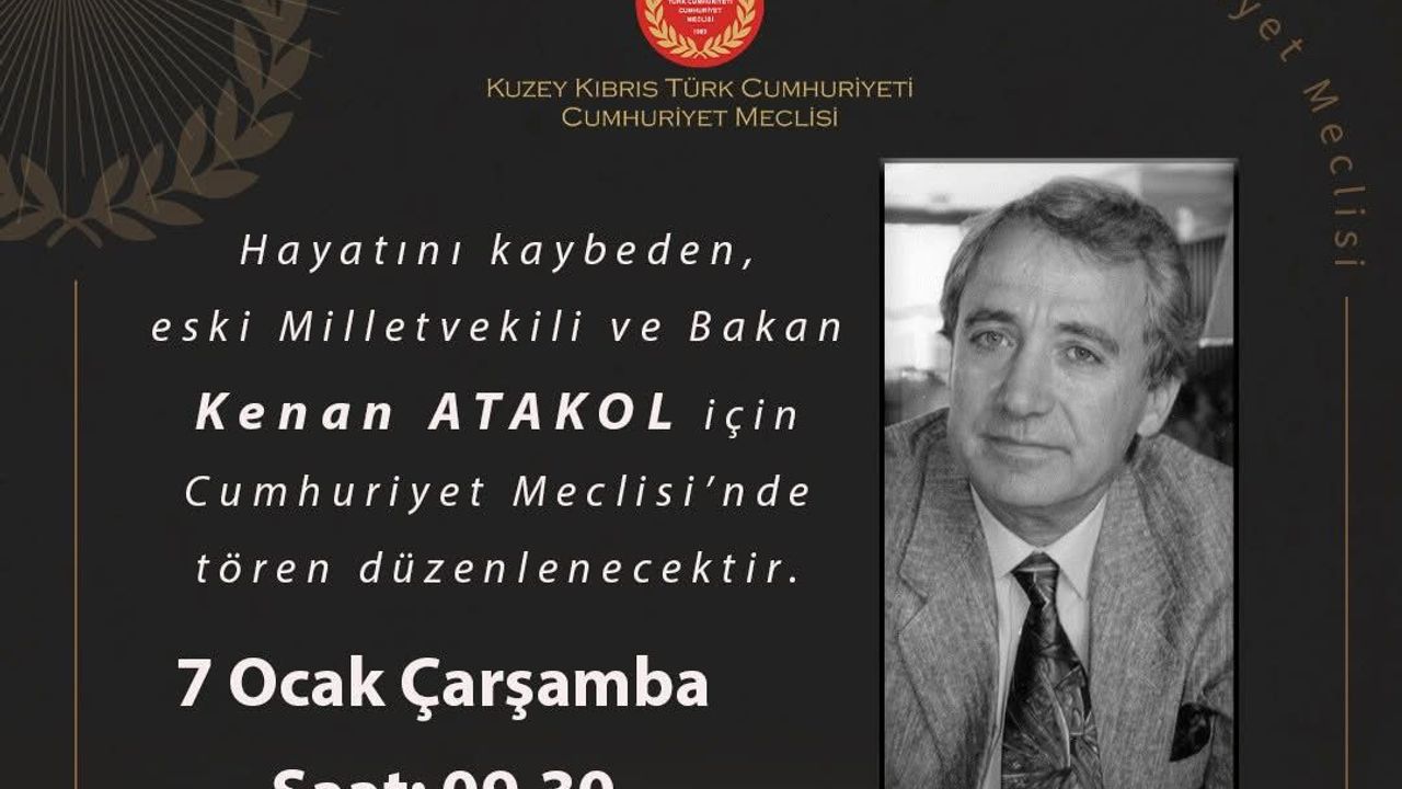 Hayatını kaybeden eski Bakan ve Milletvekili Kenan Atakol için yarın Cumhuriyet Meclisi’nde tören düzenlenecek.
