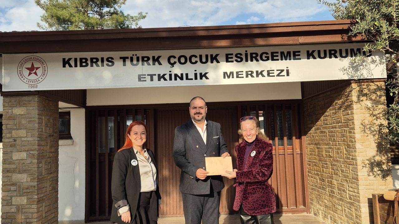 Kıbrıs Türk Anne ve Çocuk Sağlığı Derneği Başkanı Mine Bahçeci, Kıbrıs Türk Çocuk Esirgeme Kurumu yararına düzenledikleri etkinliğin gelirini Kurum Müdürü Ali Birsen’e teslim etti.
