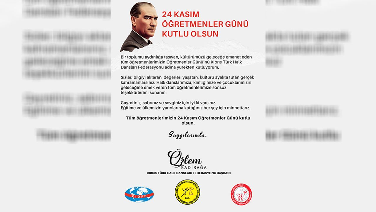 Kıbrıs Türk Halk Dansları Federasyonu Başkanı Özlem Kadirağa, öğretmenlerin toplumu aydınlığa taşıyan ve kültürel mirası geleceğe aktaran en önemli değerler olduğunu vurguladı.