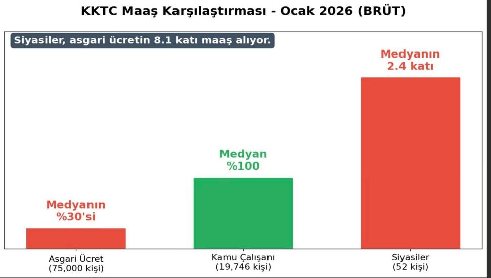 Grafiğe göre siyasetçilerin maaşları, medyan gelirin yaklaşık 2,4 katına ulaşıyor. Bu durum, Kara’ya göre halktan kopuk bir “elit katman” oluşmasına yol açıyor.