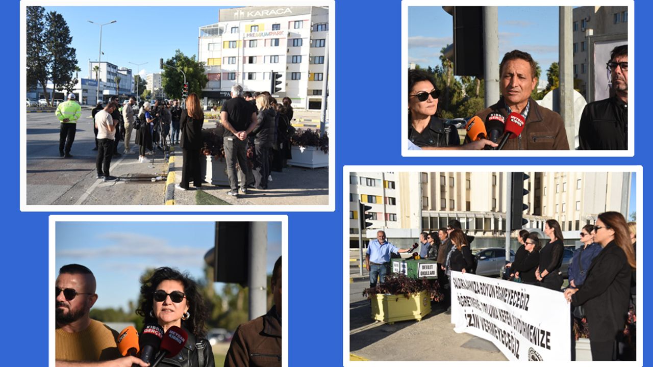 Rauf Raif Denktaş Meslek Lisesi ve Bülent Ecevit Anadolu Lisesi öğretmenleriyle sendika yönetim kurulu üyelerinin de yer aldığı eylemde “Saldırılarınıza boyun eğmeyeceğiz, eğitime, öğretmene, topluma kefen giydirmenize izin vermeyeceğiz” yazılı bir de pankart açıldı.