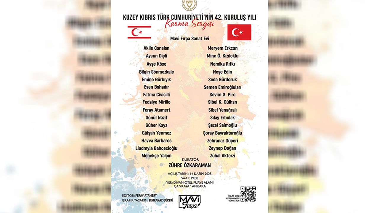 Verilen bilgiye göre, Kuzey Kıbrıs Türk Cumhuriyeti’nin kuruluşunun 42. yılında KKTC Ankara Büyükelçiliği'nin daveti ile gerçekleşecek karma resim sergisi, 14 Kasım’da Divan Otel Fuaye Alanı’nda düzenlenecek resepsiyonla sanatseverlerle buluşacak. Sergi, birçok ülkenin büyükelçileri ve elçilik çalışanları tarafından gezilecek.
