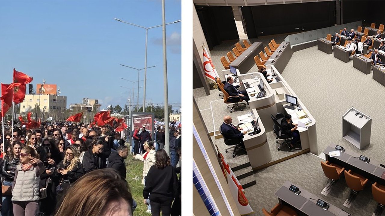 Başbakan Ünal Üstel, Cumhuriyet Meclisi Genel Kurulu’nda CTP Genel Başkanı Sıla Usar İncirli’ye yanıt verdiği sırada hem dışarıda hem de içeride tansiyon yükseldi.