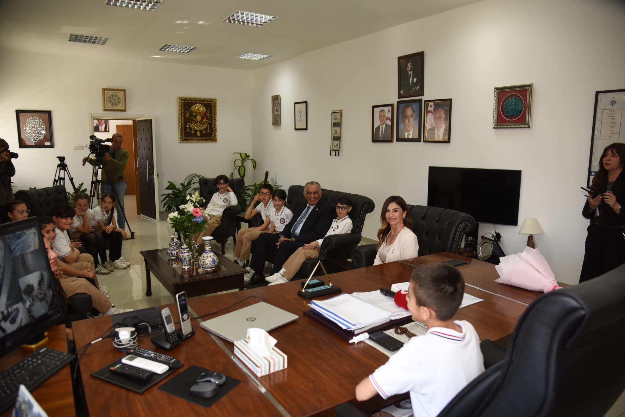 Milli Eğitim Bakanı Nazım Çavuşoğlu, 23 Nisan Ulusal Egemenlik ve Çocuk Bayramı nedeniyle Şehit Yalçın İlkokulu öğrencilerini kabul etti. Kabulde, Okul Müdürü Gönül Özal ve öğretmen Ayşe Yücel de yer aldı.