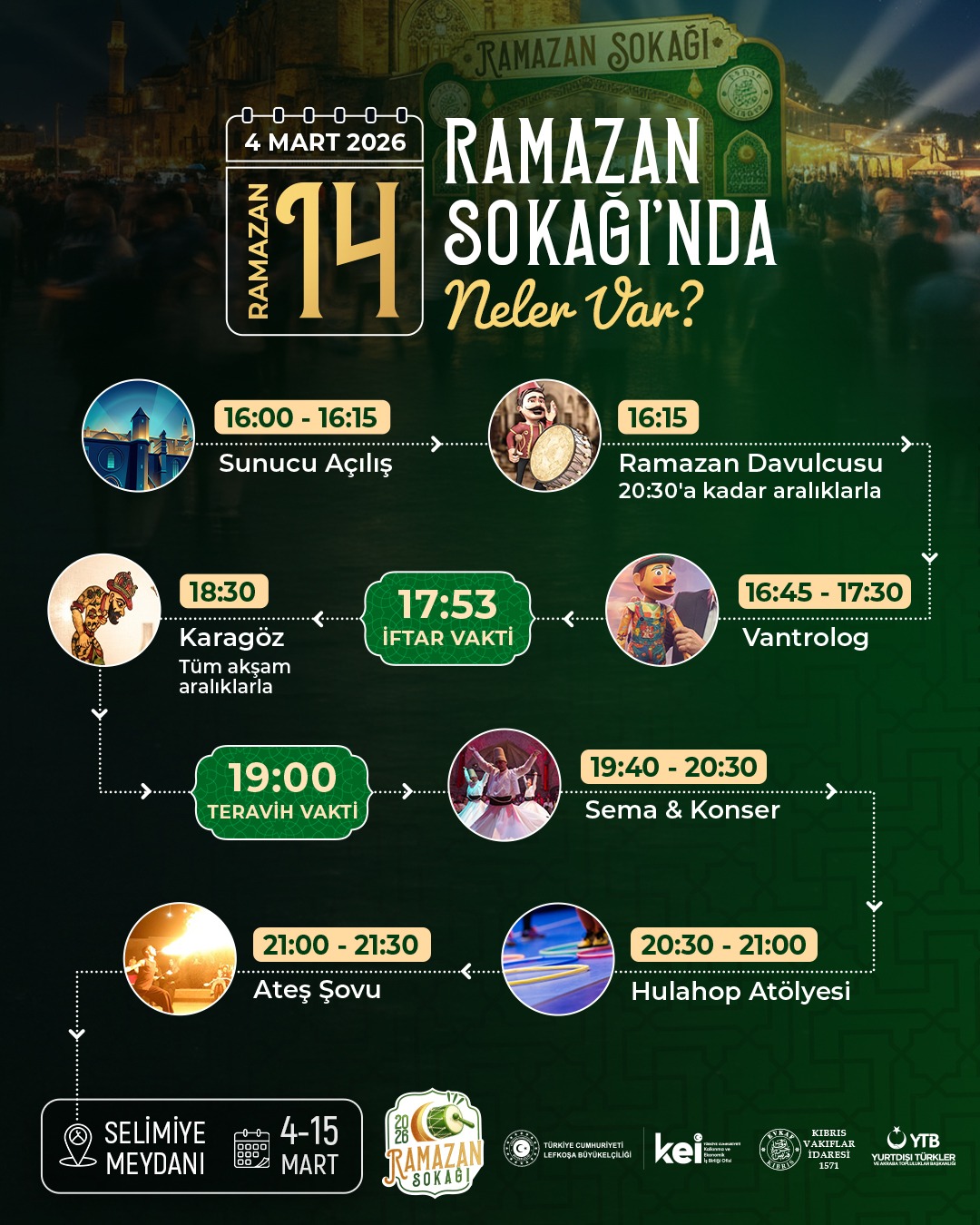 Kıbrıs Vakıflar İdaresi (Evkaf) tarafından yapılan açıklamaya göre, Vakıflar İdaresi, T.C. Lefkoşa Büyükelçiliği KEİ Ofisi ve Yurtdışı Türkler ve Akraba Topluluklar Başkanlığı katkılarıyla düzenlenecek ramazan etkinliği bu yıl ilk kez halkla buluşuyor.