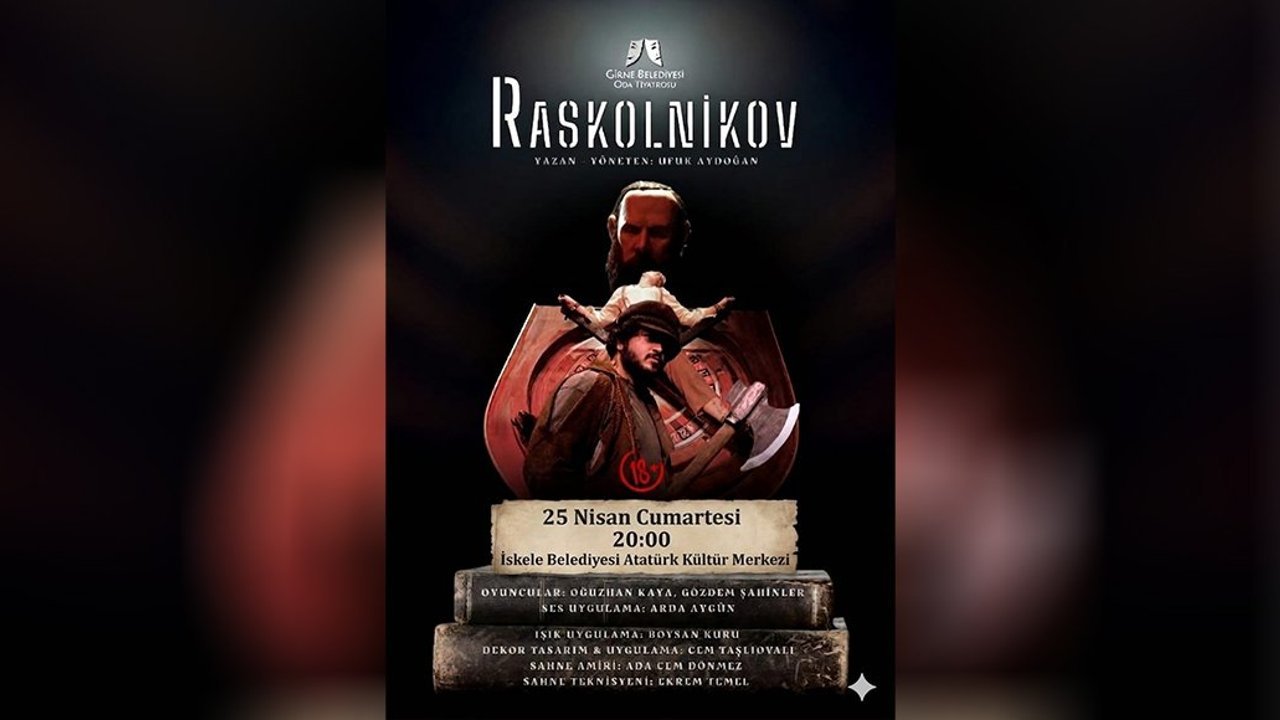 Girne Belediyesi Oda Tiyatrosu’nun sahneye koyduğu “Raskolnikov” oyunu, İskele Belediyesi’nin düzenlediği 4. Tiyatro Günleri kapsamında izleyiciyle buluşacak.