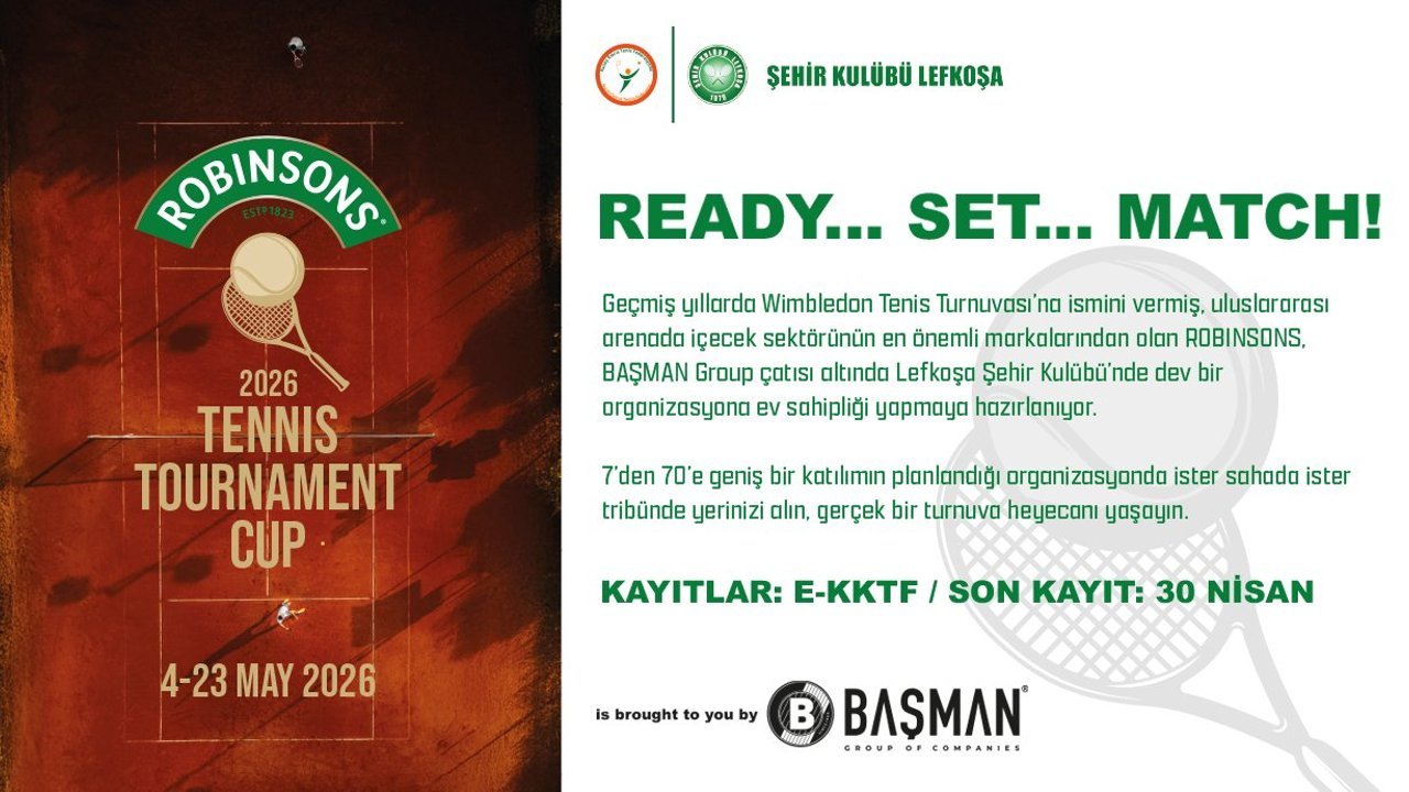 Wimbledon Tenis Turnuvası ile özdeşleşen İngiliz menşeli Robinsons’ın adını taşıyan Robinsons 2026 Tennis Tournament Cup, Başman Group ve Kuzey Kıbrıs Tenis Federasyonu iş birliğiyle, Lefkoşa Şehir Kulübü ev sahipliğinde 4-23 Mayıs 2026 tarihleri arasında düzenlenecek. Turnuvaya katılım için son kayıt tarihi 30 Nisan 2026 olarak açıklandı.