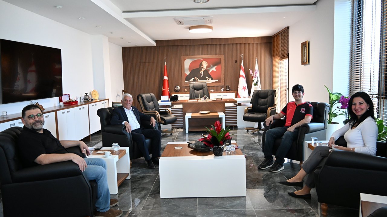 Güzelyurt Satranç Kalesi Derneği Başkanı Pembegül Üngüder Şeb’in, kulübün faaliyetleri ve çalışmaları hakkında Başkan Özçınar’a bilgi verdiği ziyarette, Emre Şeb’in annesi Pembegül Üngüder Şeb ve babası Özgür Şeb de yer aldı.