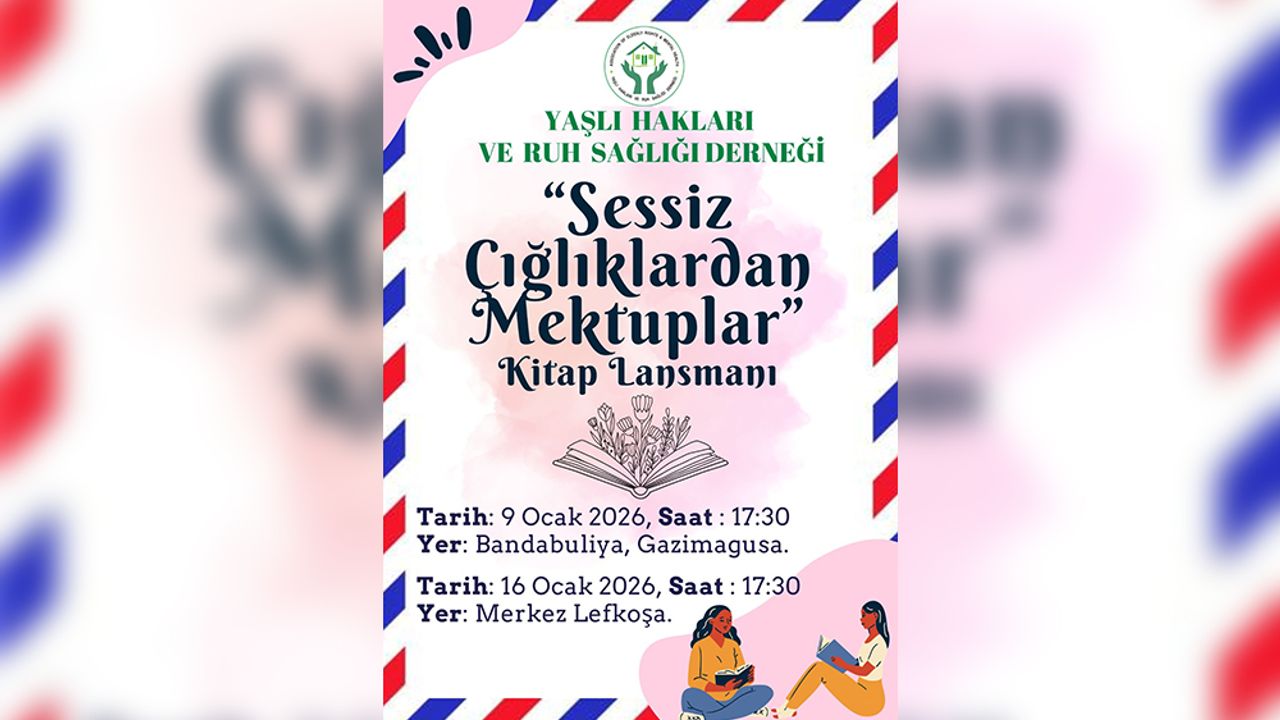 Yaşlı Hakları ve Ruh Sağlığı Derneği’nin hazırladığı “Sessiz Çığlıklardan Mektuplar” kitabı için Gazimağusa ve Lefkoşa’da tanıtım etkinliği düzenlenecek.