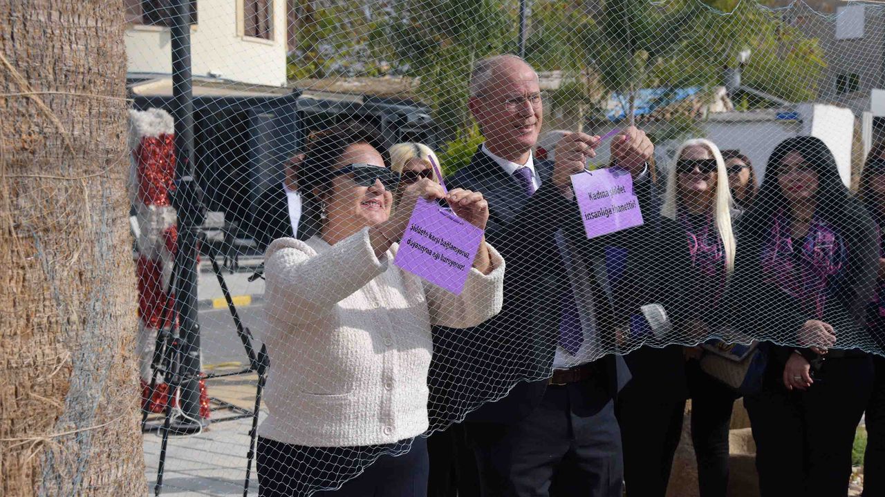 Hasipoğlu, “Ama bugün kadınların bu el emekleri başka bir anlam için örüldü… Kadına uzanan ellerin bu ağa takılması için bugün bu ağ buraya serildi” diyerek, bu farkındalık etkinliğinin önemine işaret etti.