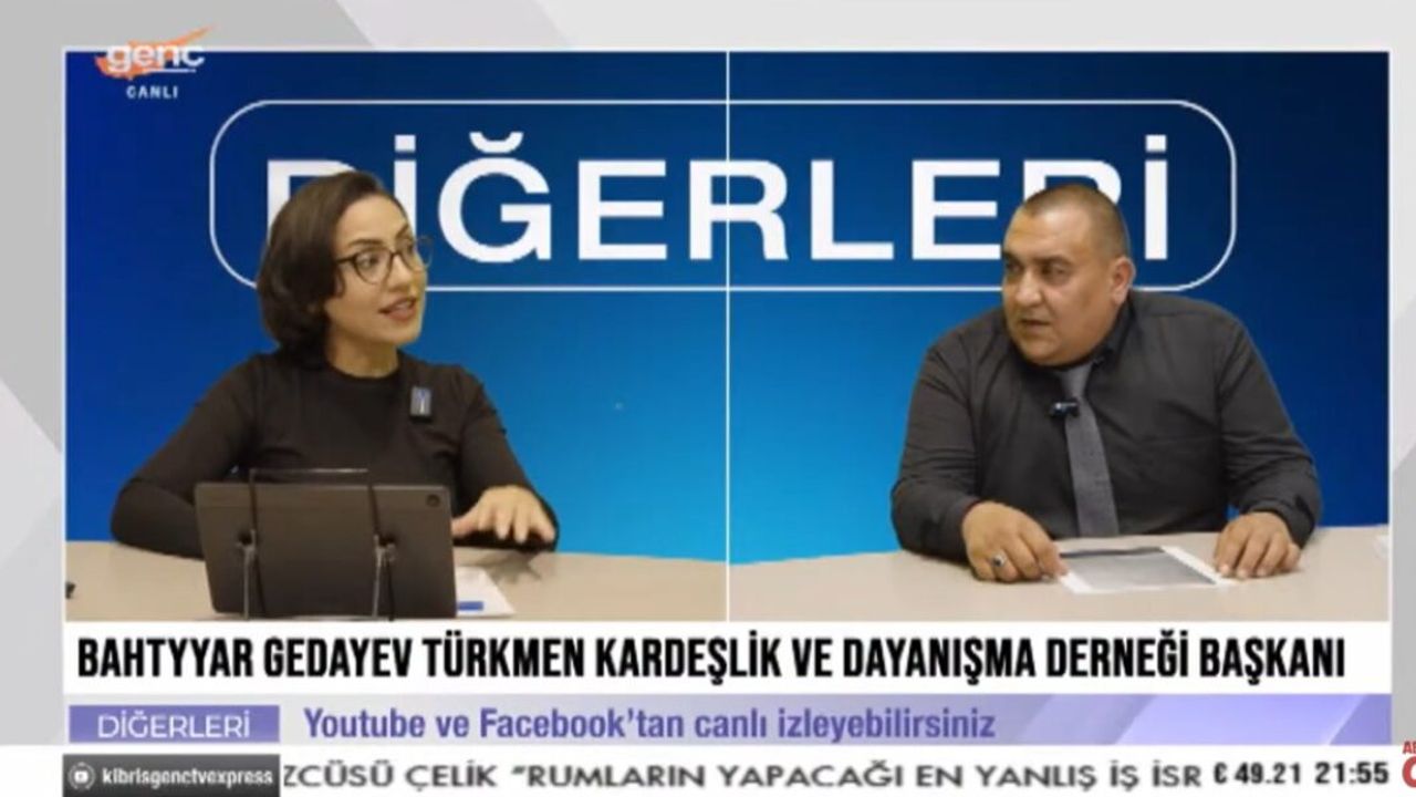 Genç TV’de Elif Evrensel’in hazırlayıp sunduğu “Diğerleri” programının son bölümünde, KKTC’de yaşayan Türkmenistanlı işçilerin durumu ele alındı. Programın stüdyo konuğu, Kuzey Kıbrıs Türkmen Kardeşlik ve Dayanışma Derneği Başkanı Bahtiyar Gedayev oldu.