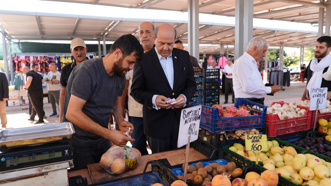 Seçim Ofisi’nden yapılan açıklamaya göre, Tatar, Güzelyurt açık pazarında esnafla bir araya geldi, vatandaşlarla sohbet etti.