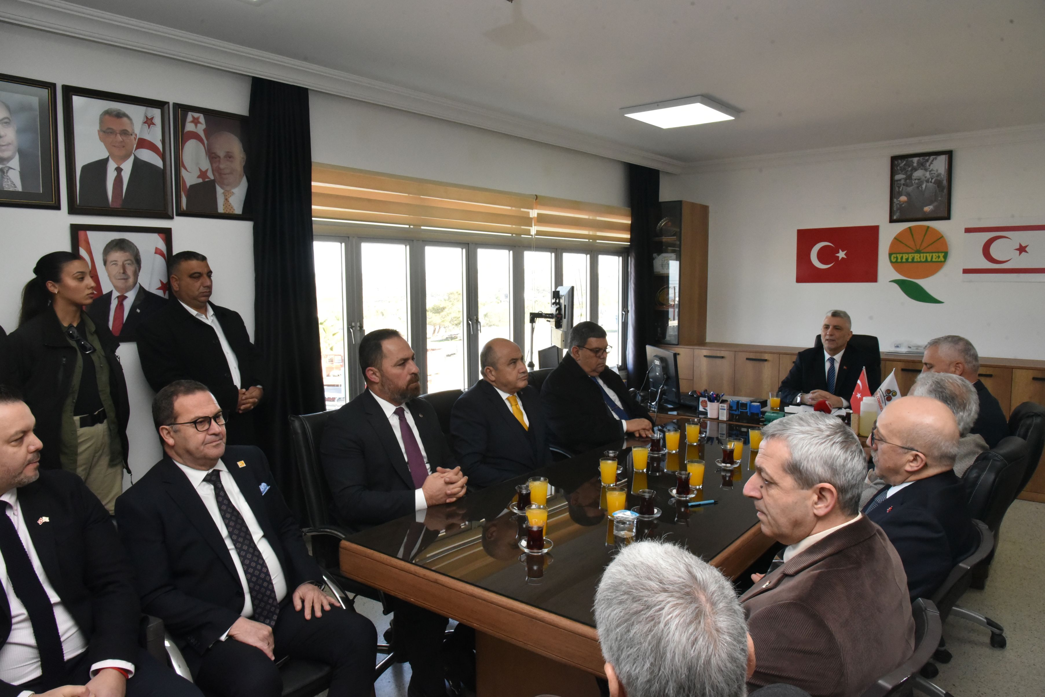 Ziyarette, TC Lefkoşa Büyükelçisi Ali Murat Başçeri, Maliye Bakanı Özdemir Berova, Ekonomi ve Enerji Bakanı Olgun Amcaoğlu, Tarım ve Doğal Kaynaklar Bakanı Hüseyin Çavuş, Kalkınma ve Ekonomik İşbirliği (KEİ) Ofisi Koordinatör Erol Öz, Türkiye Odalar ve Borsalar Birliği yetkilileri, Kıbrıs Türk Ticaret Odası yetkilileri ile Cypruvex Yönetim Kurulu üyeleri yer aldı.