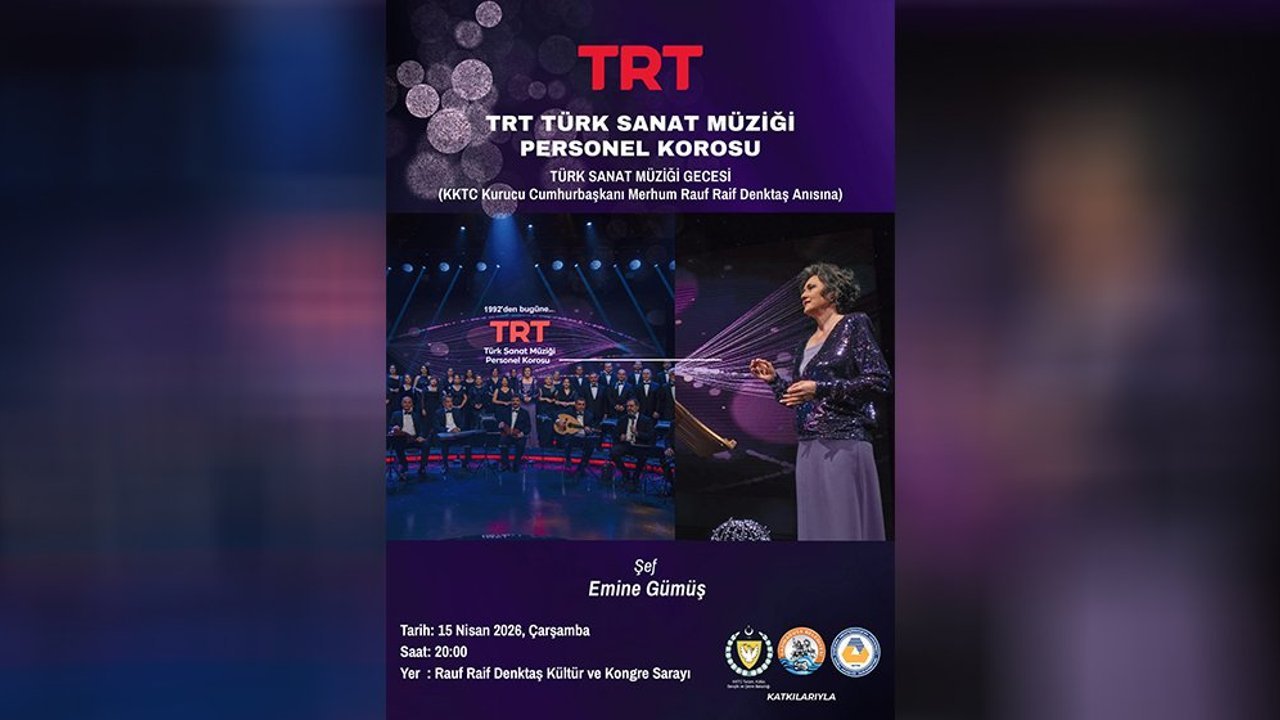 GMB’den verilen bilgiye göre, Türkiye Radyo Televizyon Kurumu (TRT) Türk Sanat Müziği Personel Korosu, çarşamba günü Gazimağusa’da müzikseverlerle buluşacak.