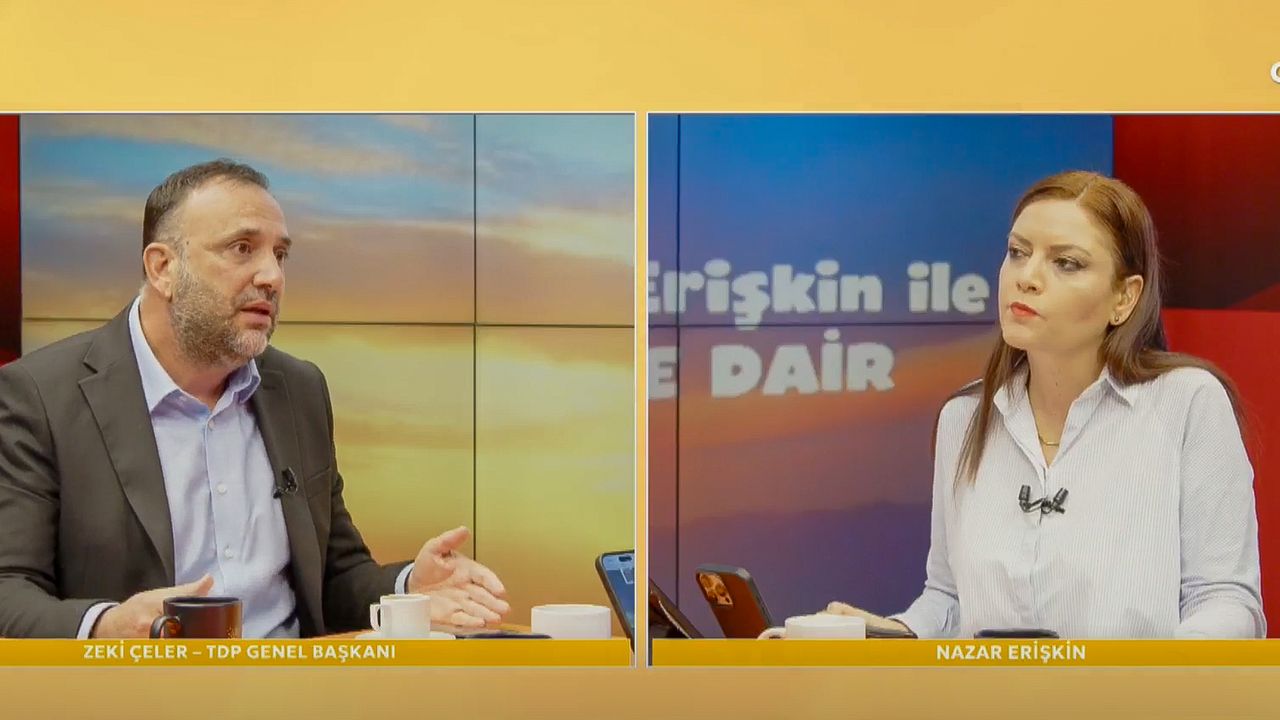 Partiden yapılan yazılı açıklamaya göre TDP Genel Başkanı Çeler, Kanal T’de Nazar Erişkin’in hazırlayıp sunduğu “Güne Dair” programında, olası erken seçim, ülke gündemi ve Kıbrıs sorunu konusunda bazı değerlendirmelerde bulundu.